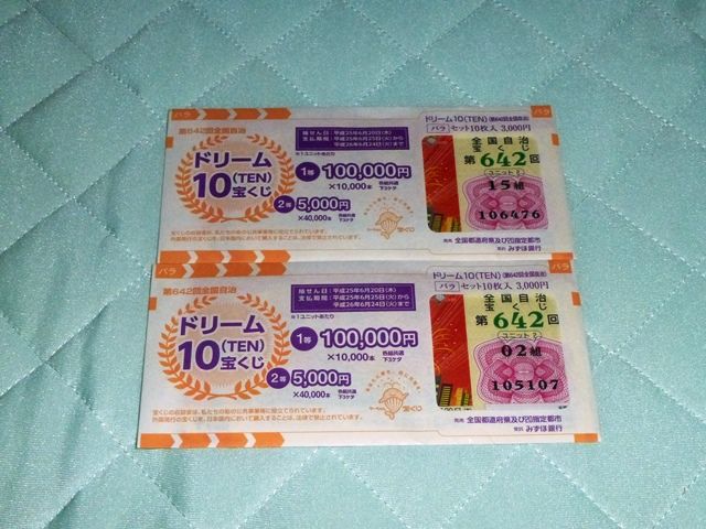 5月17(金)からドリームジャンボ&ドリーム10(TEN)が発売になったので、早速買ってきた。