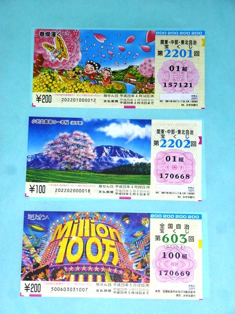 はずれた宝くじって、ナンバーを調べるとすぐに捨てていたんだけど、絵柄もいろいろあって面白い、というのも集めだした動機のひとつ。ほんわかしていて、味があるものが多い。