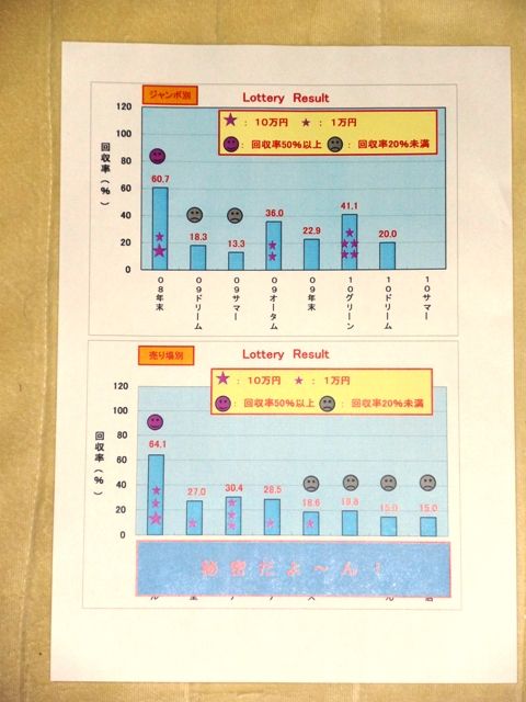 これを見れば、どのジャンボの成績が良かったとか、どこの売り場の成績が良いとかが、一目で分かるようになっている。