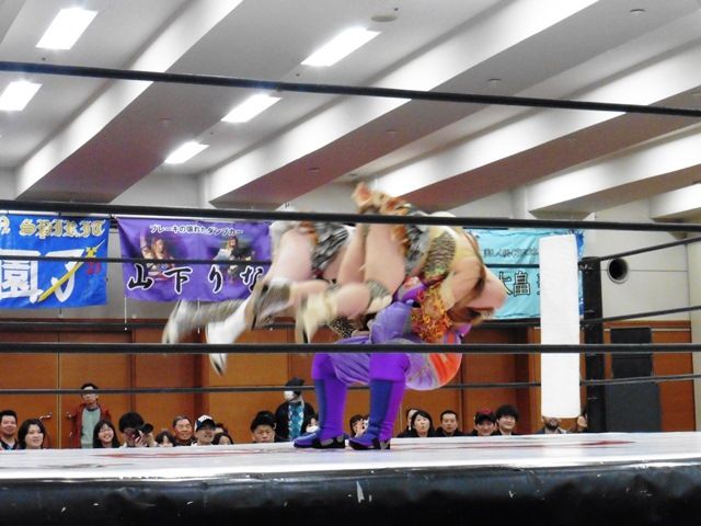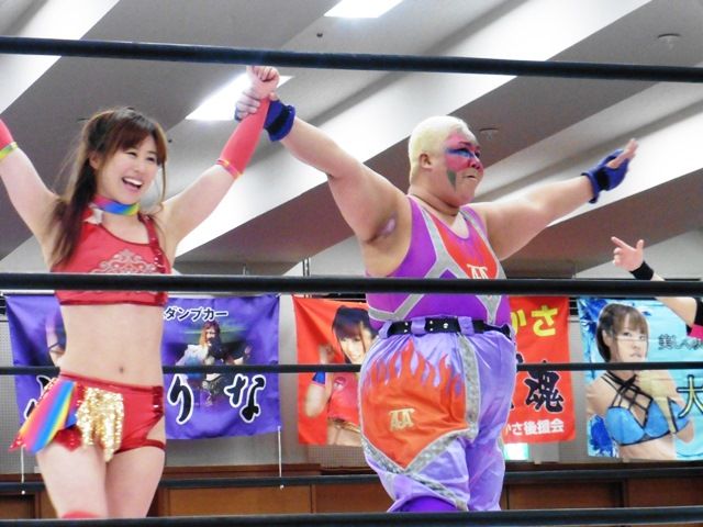 星ハム子と宮城もちはアイスリボン所属で「らぶりーぶっちゃーず」というユニットを組んでいるらしい。お腹を利用した攻撃が得意? いい味出していた(笑)