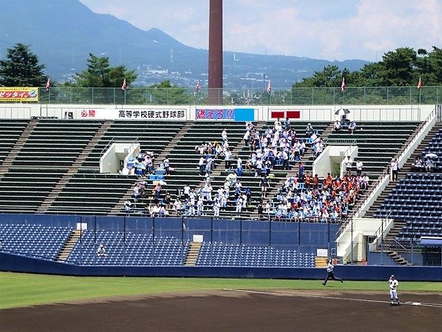 地方大会の初戦で、そんなに名の知れた高校の対戦ではないので観客席もまばら。応援はベンチ入りできない部員と父兄さんくらいかな。