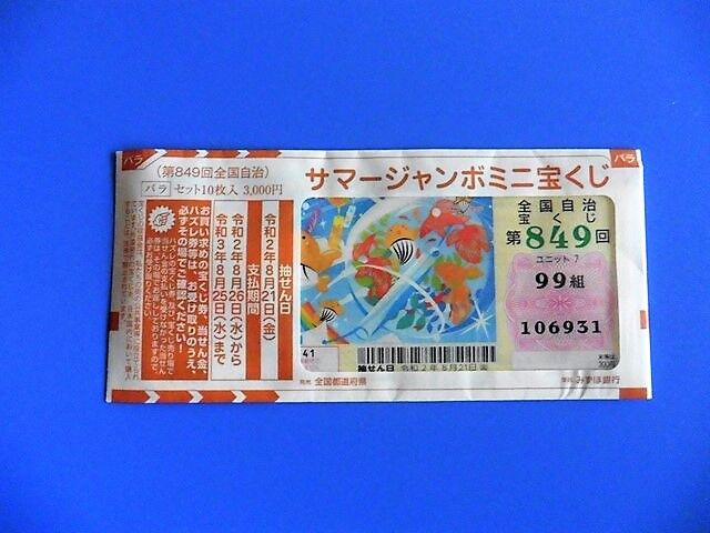サマージャンボミニは1等が1000万円(前後賞なし)。3年前の前後賞合わせ1億円、2年前の同7000万円、昨年の同5000万円と年々減額されてきて、遂に前後賞なしの1000万円になってしまった。