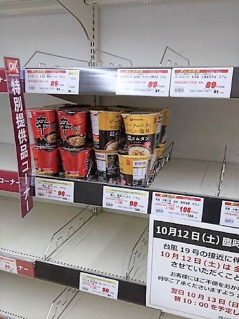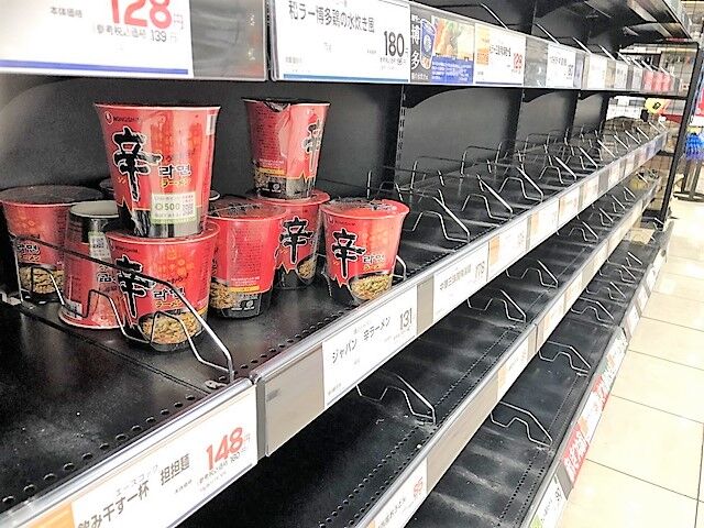 だって、なにがしかの食料品不足が起ったときでも、必ず韓国ラーメンだけが売れ残っているからだ。昨年の超大型台風19号が日本全国で猛威を振るった際、多くの人が非常事態に備え食料品を買い込んだ。