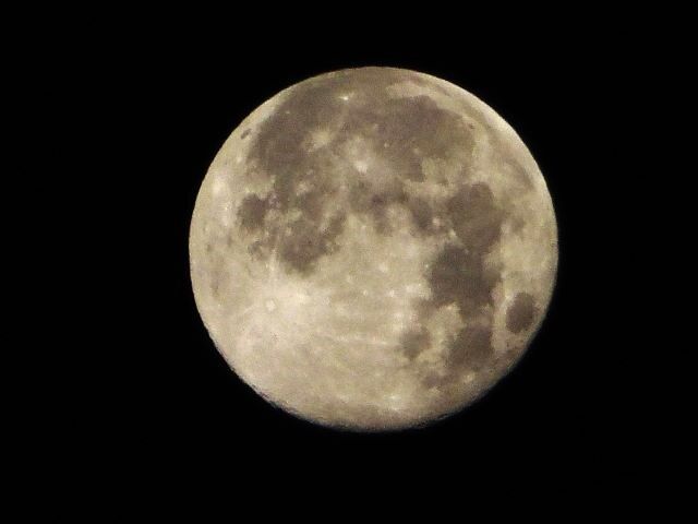 5日の午前8時過ぎに満月になったが、実際には当日18時過ぎから東の空に昇ってきた。写真は日付が変わった6日の1時ころのもの。