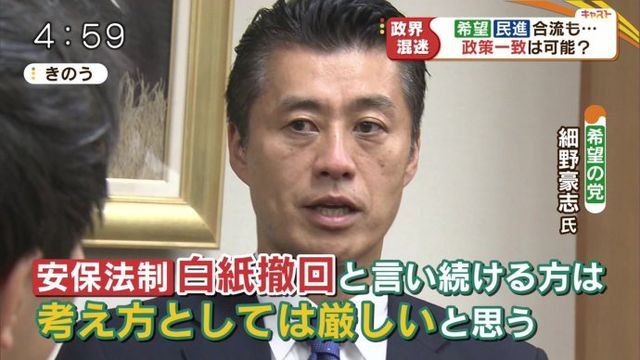 希望の党は「安保法制」や「憲法改正」などで、民進党議員を「選別」しようとしているが、じゃあ細野はどうなんだ?